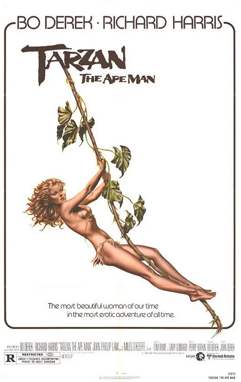 But we have to include the other version of this poster which doesn’t even feature Tarzan! Because in a movie about the most famous African hero (who is white), they decided to focus on Jane because she is played by Bo Derek, “the most beautiful woman of our time.” You have to admire how far the marketers went with this.